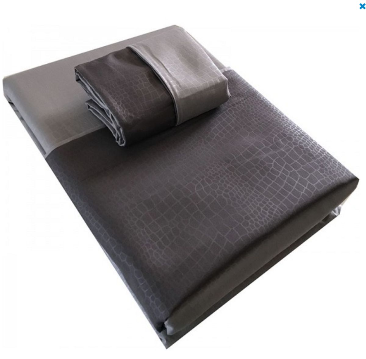 Realizzato in microfibra 100% poliestere, questo completo garantisce morbidezza al tatto, resistenza ai lavaggi e una facile manutenzione. Il design double face permette di scegliere ogni giorno tra due tonalità diverse, adattandosi con eleganza a qualsiasi arredamento.