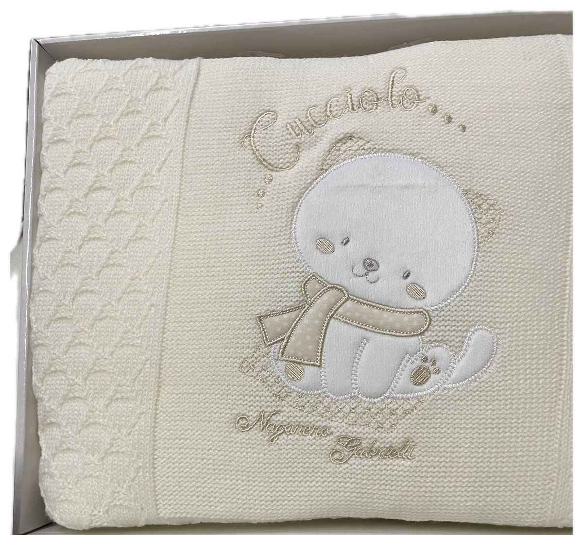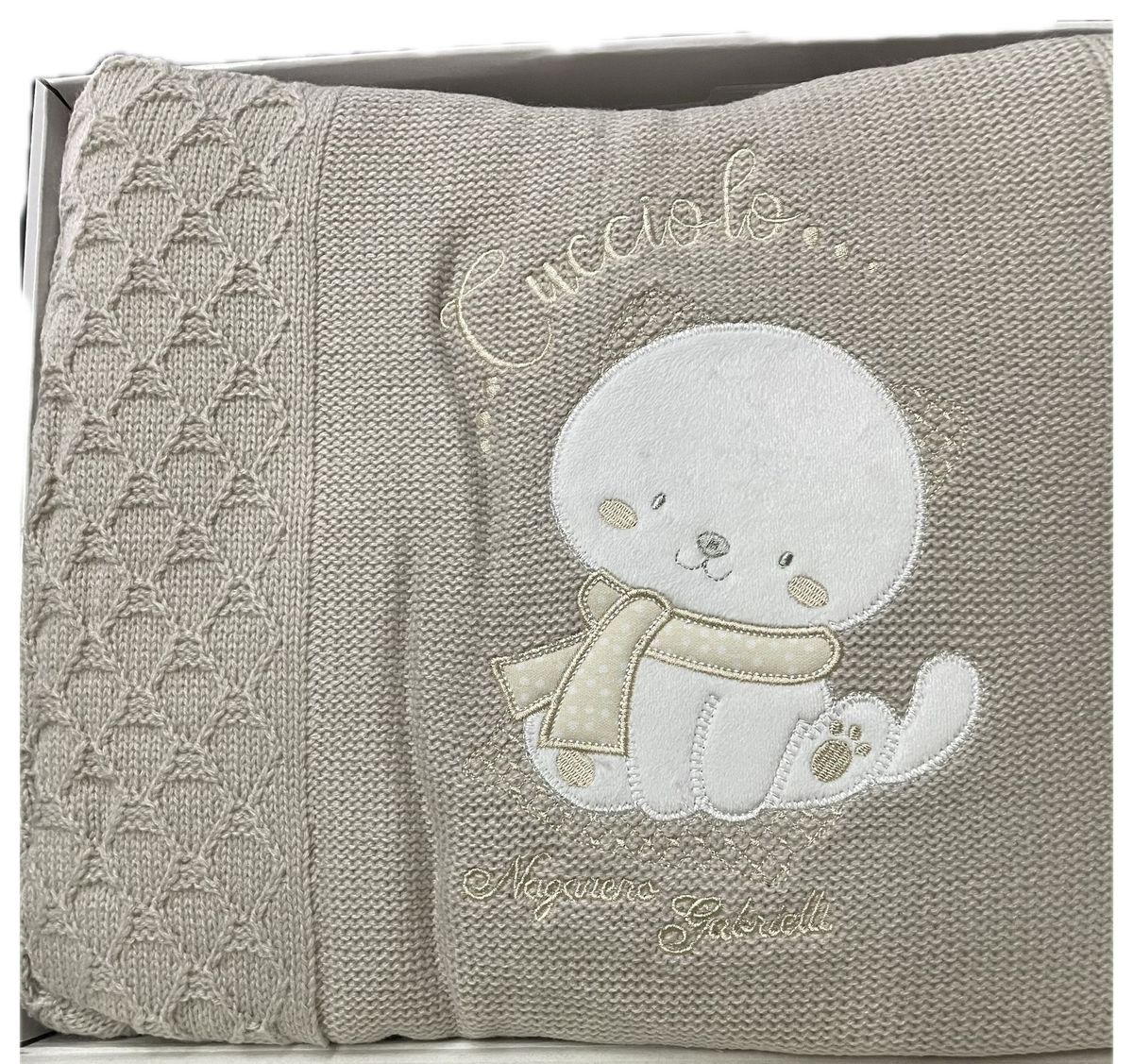 Dimensioni: 70 × 85 cm Tessuti morbidi e delicati, ideali per la pelle sensibile del neonato Ricamo elegante, per un tocco di stile unico Trattamento smacchiato, per una maggiore resistenza alle macchie Imbottitura soffice, che mantiene il bambino al caldo senza appesantire Design Nazareno Gabrielli, sinonimo di qualità e cura nei dettagli