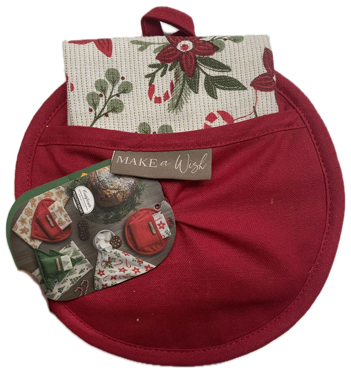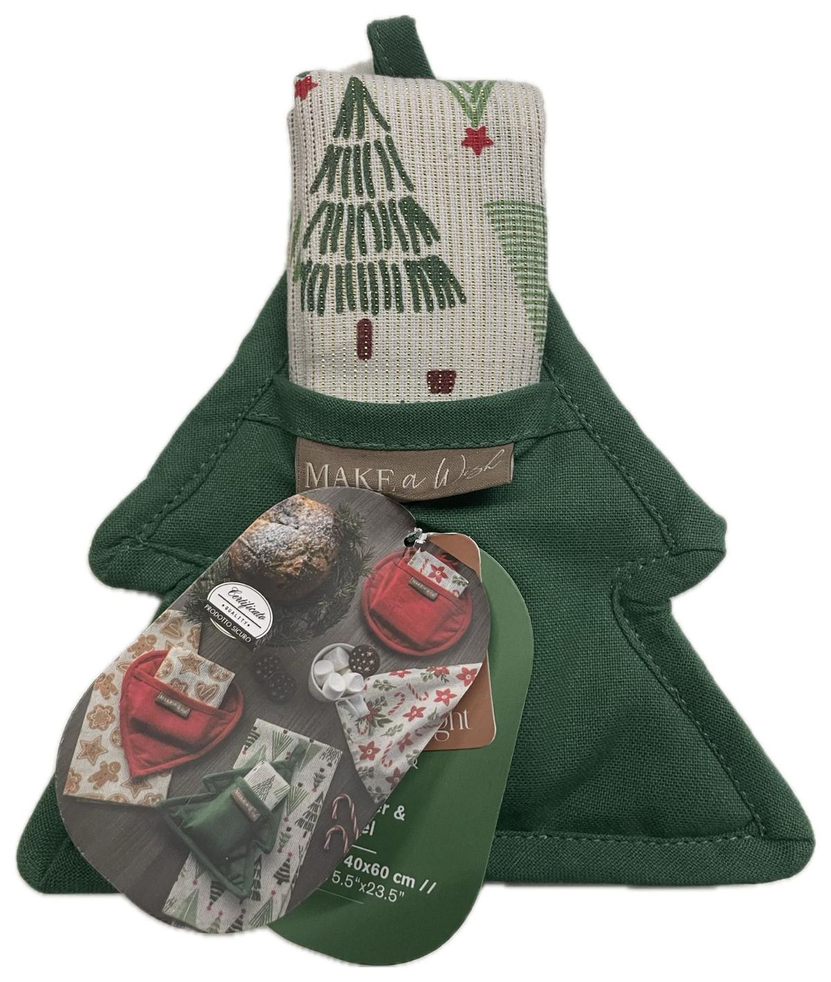 Completa la tua cucina con questo pratico ed elegante set composto da una presina e uno strofinaccio, perfetto per l’uso quotidiano e ideale anche come idea regalo.