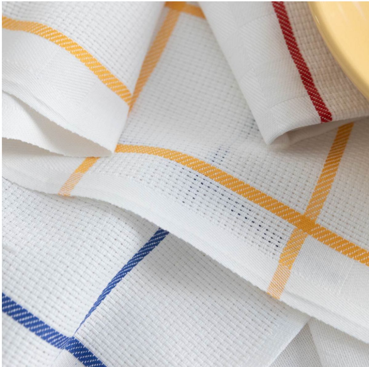 I tessuti sono decorati con righe colorate armoniose, disponibili in tonalità vivaci o pastello come rosso, blu, verde, giallo e altre combinazioni classiche, donando un tocco di allegria e stile alla cucina.