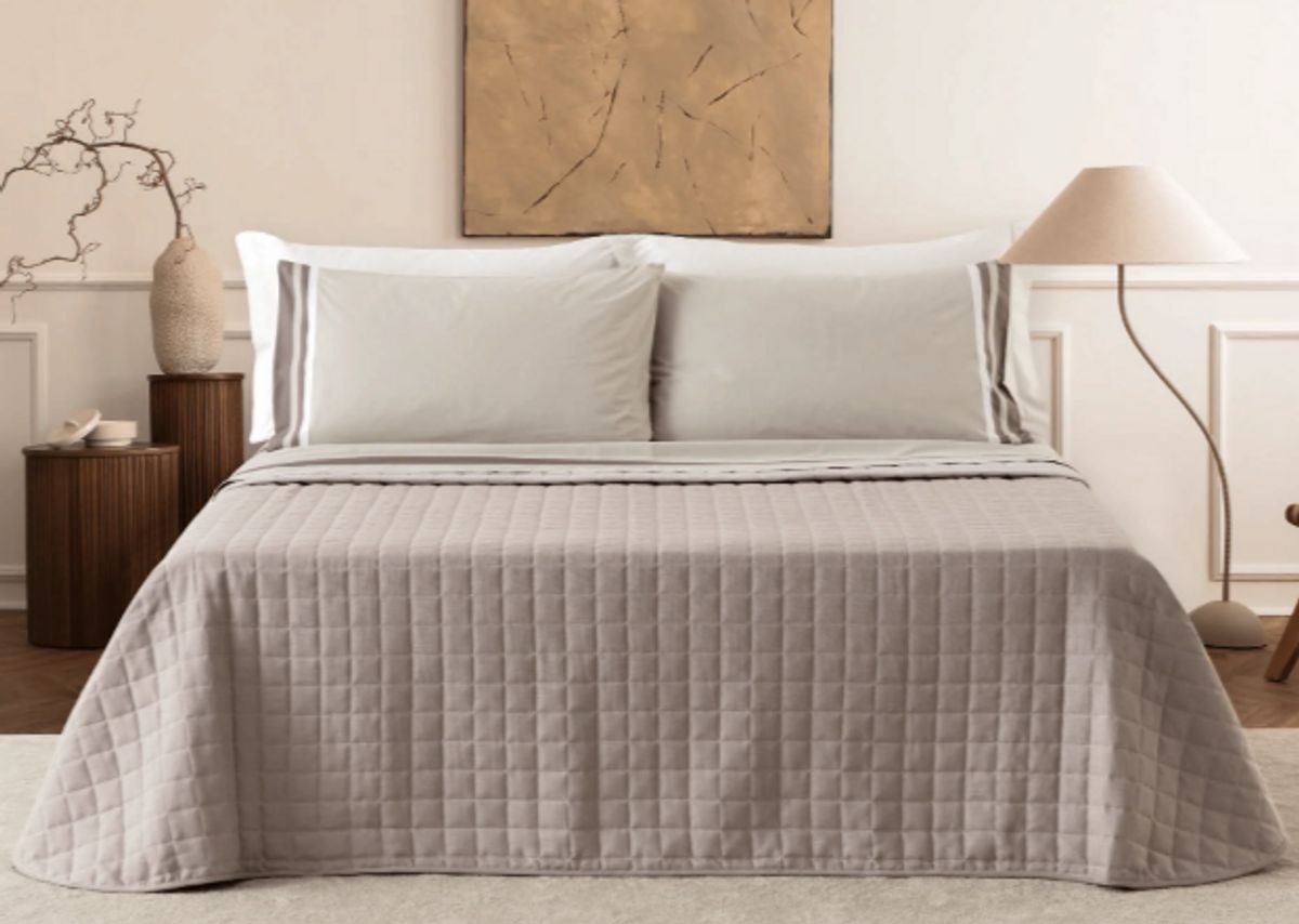 Il trapuntino matrimoniale Blom di Linea Oro unisce eleganza naturale e comfort quotidiano, grazie al raffinato tessuto misto lino che dona un aspetto fresco e ricercato alla camera da letto. Il design essenziale e moderno si adatta facilmente a qualsiasi stile d’arredo, valorizzando l’ambiente con semplicità e gusto.